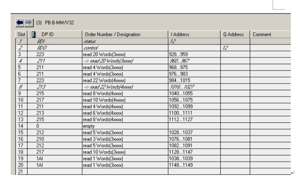 可见,既有读取内部寄存器,也有读取输入寄存器,数据所占大小也不尽相同,最终统计共占用地址为220字节。通过查阅鼎实模块的技术手册,最大通讯字节是224字节,几乎可以说是将鼎实PB-P-MM模块满负荷运行。在这个项目的前期选型以及项目实施过程中,因为有如此多的通讯任务,如此多的通许字节,且工作在西门子S7-400H冗余CPU及PCS7的大环境下,笔者一直略有担心。但最终的运行效果是非常好,完全达到理想的效果。