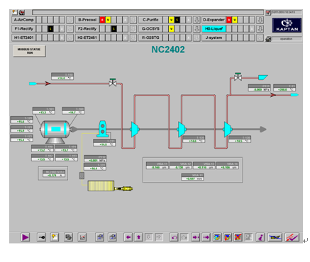 2009年初,我公司完成了土耳其KAPTAN钢厂KDON(Ar)-3000/3000/80空分项目。DCS控制系统采用西门子PCS7系统,硬件采用冗余414CPU,有五个ET200M子站构成,共计I/O点数600点。仪控设计也对第三方通讯提出了很高的要求。在整个空分系统中,除空分本体外,共有三台重要的单体动设备,分别是ATLAS COPCO空气增压机、英格索兰的原料增压机、以及沈阳鼓风机厂的循环增压机,他们分别有独立的控制单元控制,但同时要求能够将其内部工艺参数在DCS上监控。通讯协议为MODBUS-RTU。