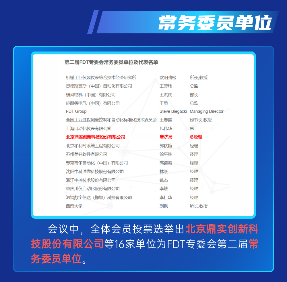 FDT(中国)第二届一次委员大会成功举办,北京鼎实继续当选常务委员单位